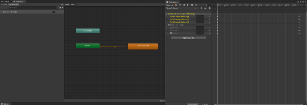 プレイヤーに制限時間がわずかになったことを伝えやすくするために、タイマーのテキストが赤くなり、一定間隔で大きくなったり、小さくなるようにしました。こうすることで、プレイヤーを焦らせることができたと思っています。